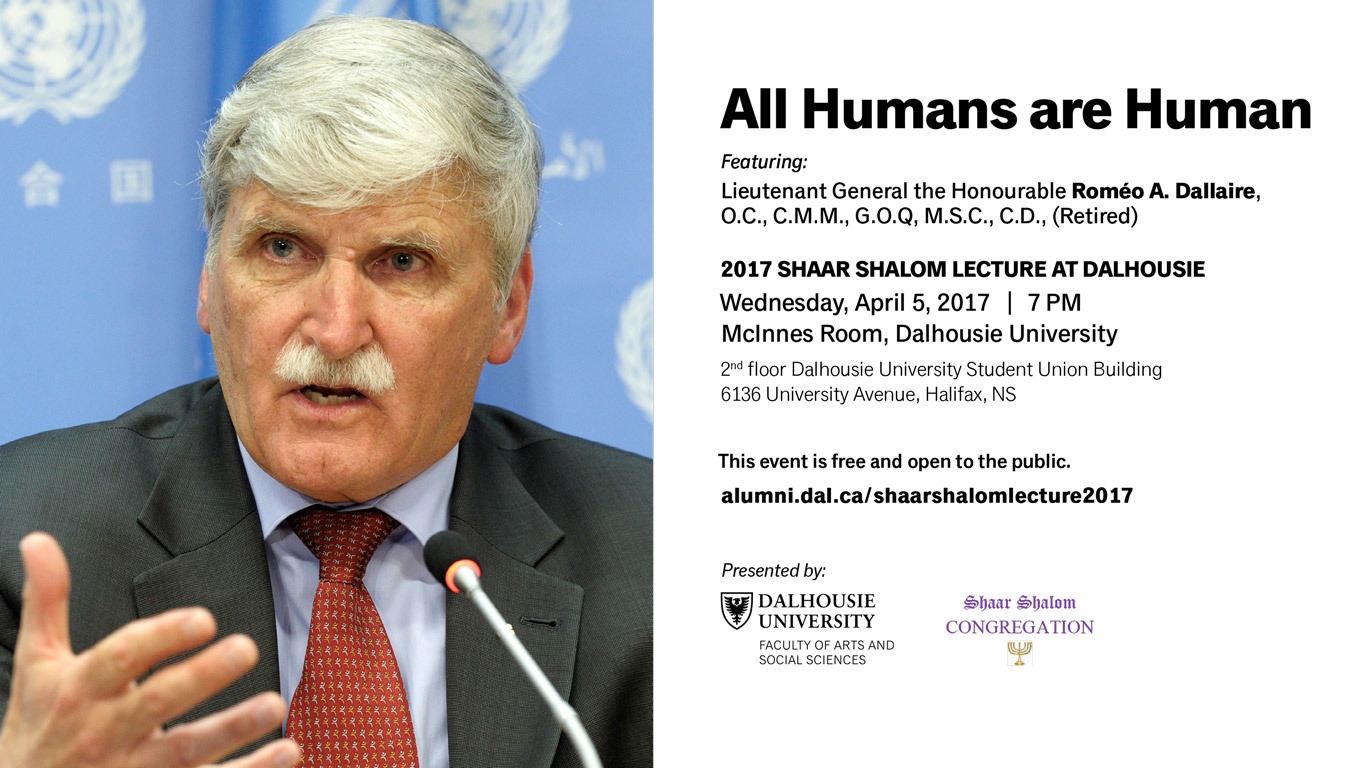 Lieutenant General the Honourable Roméo A. Dallaire Delivers the 2017 Shaar Shalom Lecture at Dalhousie: “All Humans are Human”