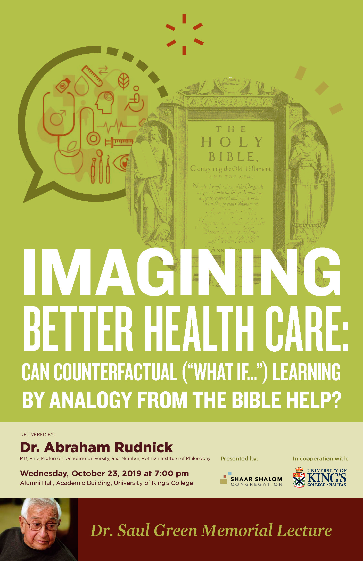 Dr. Saul Green Memorial Lecture – “Imagining Better Health Care: Can counterfactual (“what if…”) learning by analogy from the bible help?”