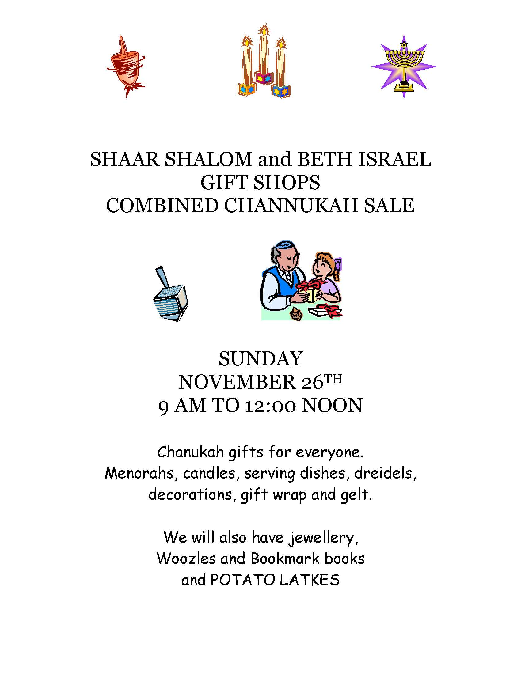 The Shaar 1981 Oxford St, Halifax, NS, CanadaAnnual Community Hanukkah Gift Shop Sale, Sunday November 26th. Details to follow!