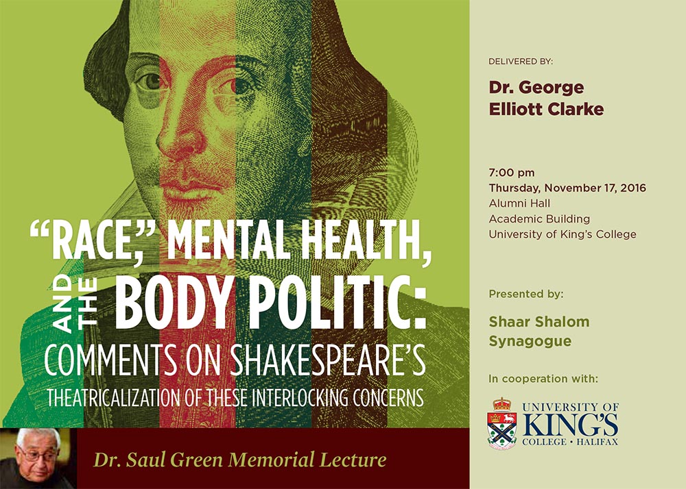 Dr. Saul Green Memorial Lecture presents Dr. George Elliott Clarke